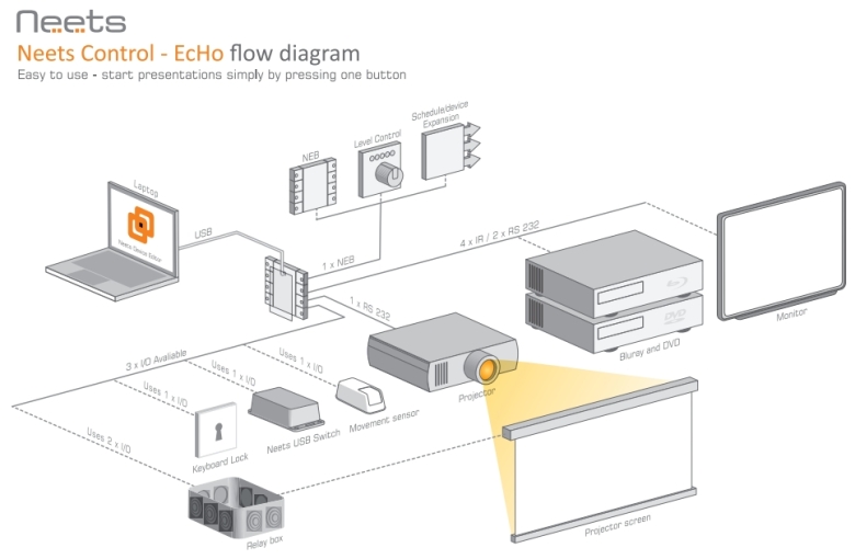 Система управления Neets Echo — это универсальное в функциональности, удобное в настройке и интуитивно понятное в эксплуатации решение для любых аудио-видео комплексов.