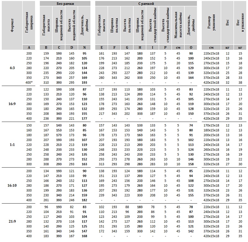 - Проекционное полотно: VisionWhite, VisionWhitePro, ReferenceWhite, ReferenceGrey, VisionAcoustik и VisionRear – доступен с черной рамкой кроме VisionRear